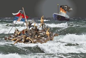 Као илустрацију тога, наведимо само једну од тих сфера, а која има и значајне економске импликације. Раније сам већ писао да сматрам како би за заустављање и урушавање државе и привреде било неопходно темељно преиспитати и нашу садашњу спољнополитичку орјентацију у којој се формално ослањамо на четири спољнополитичка стуба (Вашингтон, Брисел, Москву и Пекинг), а у суштини се инсистира на безалтернативном (једнообразном) мишљењу и пропагандном слогану „ЕУ нема алтернативу“. Тада сам, између осталог, написао и следеће: [8]